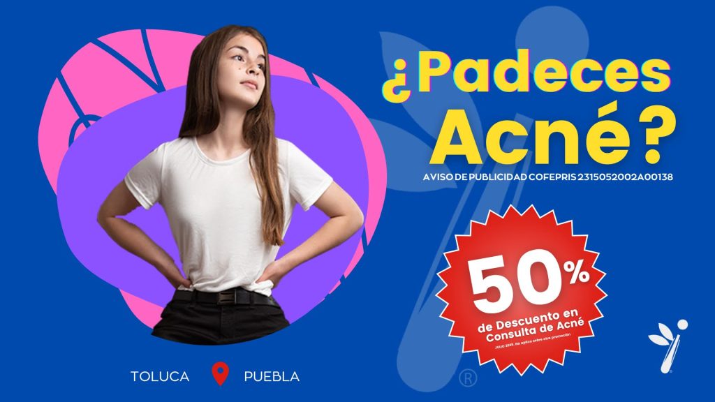 AVISO DE PUBLICIDAD COFEPRIS 2315052002A00138 Facebook Instagram Youtube Tiktok Whatsapp Facebook-messenger QUIENES SOMOS Somos una Clínica para la Atención Integral del Acné Cicatrices de Acné y Rosácea. APROVECHA EL MES DE OCTUBRE 2025 50% DE DESCUENTO EN CONSULTA DE ACNÉ AGENDA TU CITA Opiniones Conoce las opiniones de nuestros pacientes Sucursales Toluca, Edo. Mex | Puebla, Puebla Contáctanos !Agenda tu cita! Opiniones Conoce las opiniones de nuestros pacientes Sucursales Toluca Edo. Méx | Puebla, Puebla Contáctanos ¡Agenda tu cita!. Opiniones de nuestros pacientes Ver más Facebook Youtube Instagram Tiktok Síguenos 0 Ubica tu Clínica Toluca Estamos ubicados en Hermenegildo Galeana 502,Francisco Murguía, 50130 Toluca de Lerdo, Méx.7225424791 Puebla Estamos ubicados dentro de la Plaza «ALAPAZ»,Teziutlan Sur 45, La Paz, 72162. Puebla, Pue.2226884506 ¡AGENDA TU CITA!